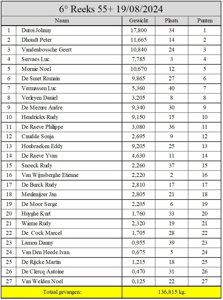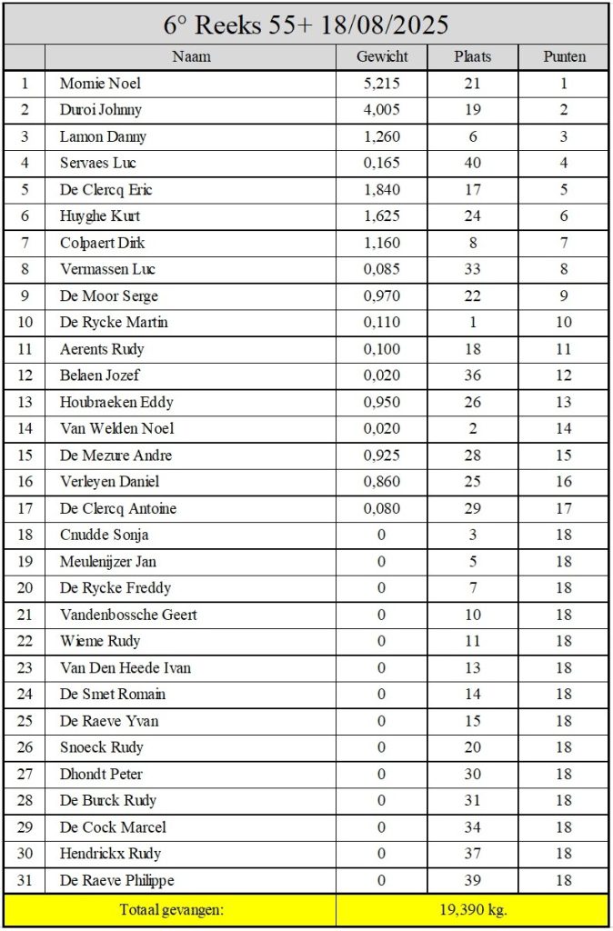Uitslag: 6° reeks 55+